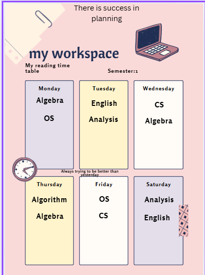 I will create a personalized study plan or reading time table tailored to your exams, courses, and available time.